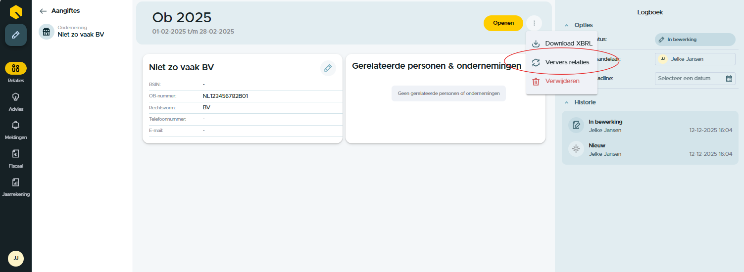 In beiden gevallen is de oplossing het aanpassen van de data op de klantkaart, vervolgens navigeert u terug naar de form-detailpagina alwaar u de relaties kunt verversen. De nieuwste data van de klantkaart wordt vervolgens ingeladen in de aangifte, waarna u de aangifte opnieuw kunt verzenden.
